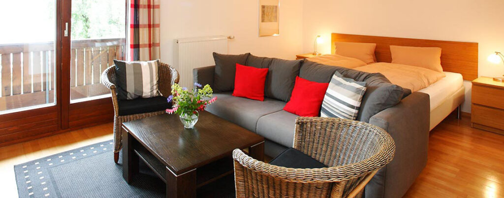 1. Stock, 1-Raum Ferienwohnung mit großem Südbalkon, 35 m2 Nutzfläche